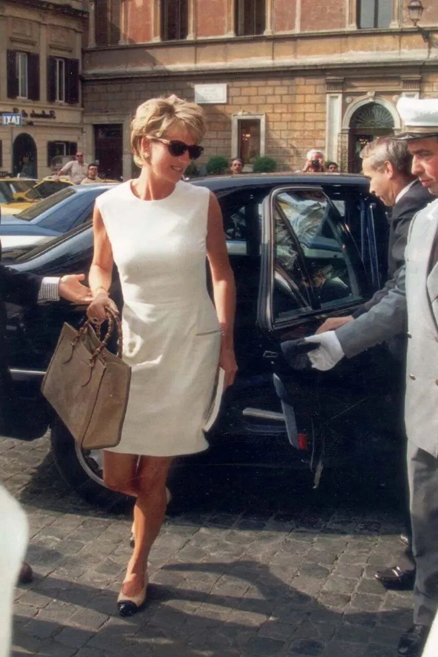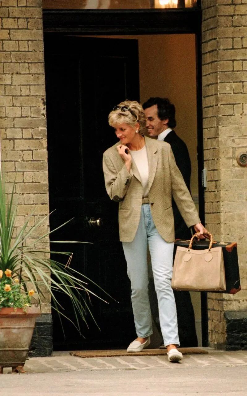 九十年代的戴妃也是竹节包的著名粉丝之一,街拍造型必定有竹节包的存在。