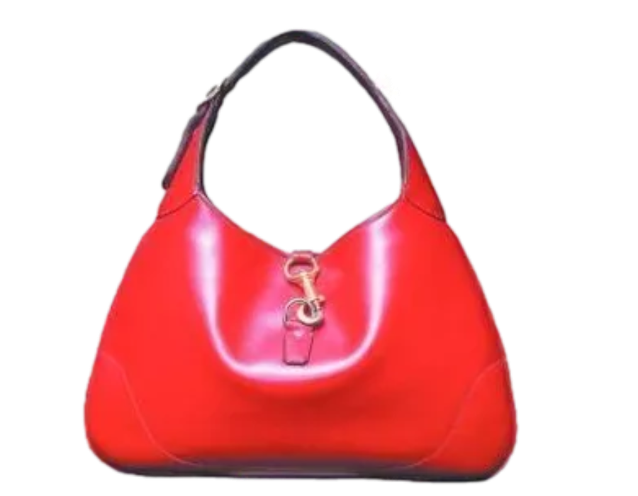 1960年,GUCCI又推出新款G1244,将手袋的鱼钩锁换成了金属管状弹簧锁,同时融入了沿用至今的经典红绿织带元素。