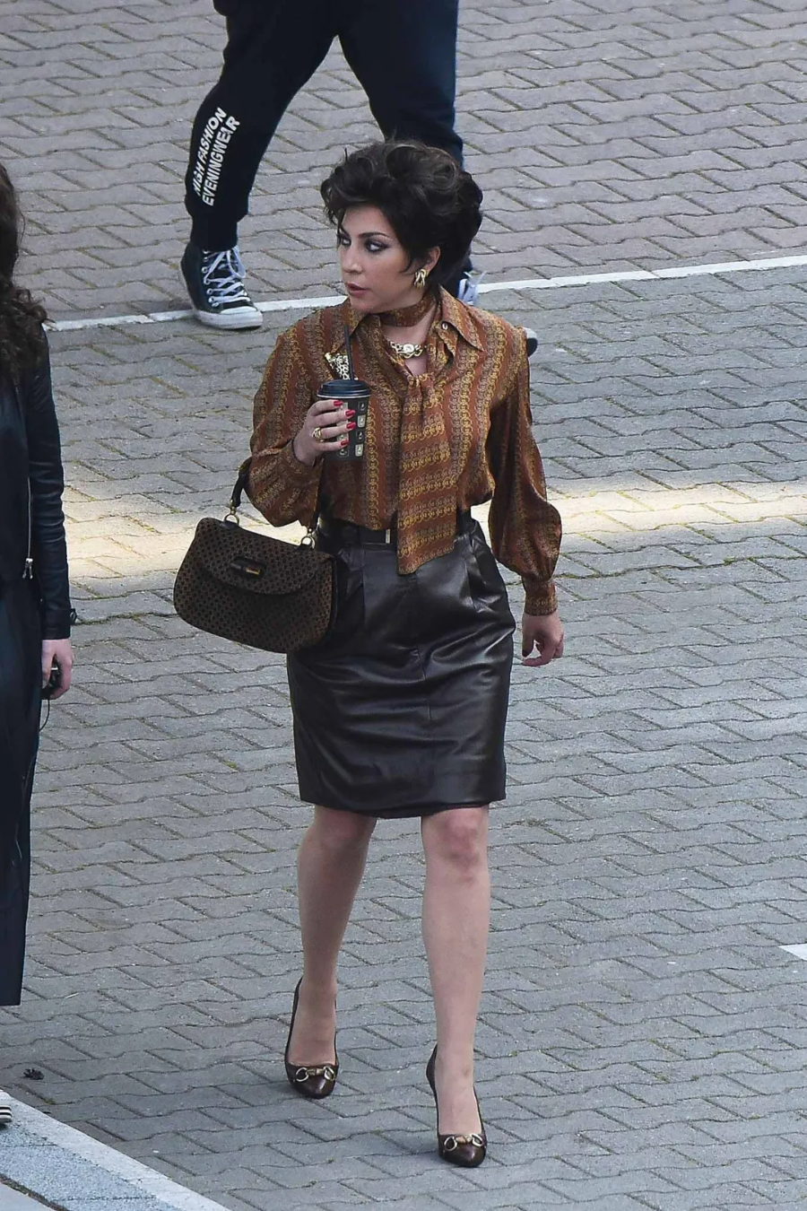 《HOUSE OF GUCCI》剧照中也还原了在70年代的马衔扣穿搭。