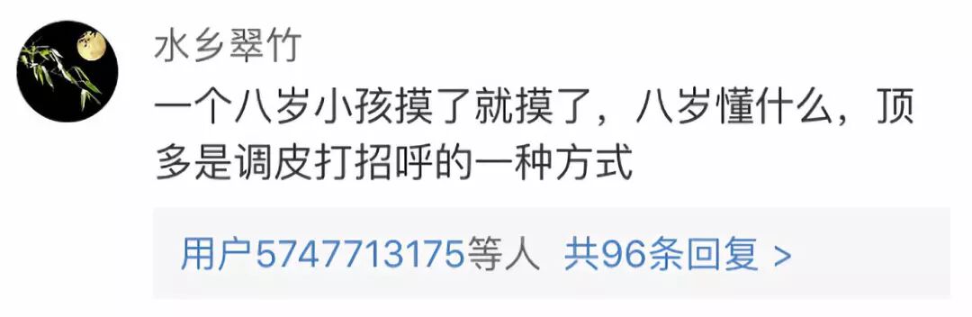 “一个八岁小孩摸了就摸了,八岁懂什么,顶多是调皮打招呼的一种方式。”