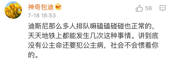 “迪士尼那么多人排队嘛,磕磕碰碰也正常的,天天地铁上都能发生几次这种事情。