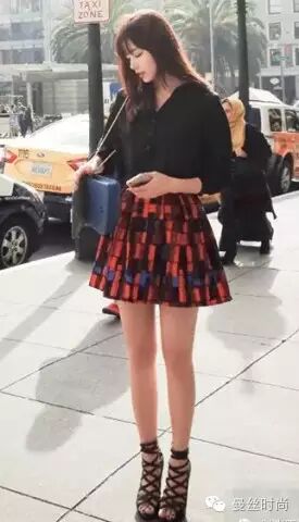 黑色衬衫经典必备,穿出优雅迷人的气质,配几何图案的靓丽短裙,高腰设计,张开的裙摆更显纤细,也遮挡住臀部和大腿的线条,就算腿粗也不用担心哦。