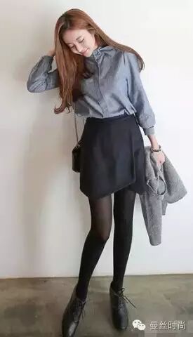 牛仔衬衫深受女孩的喜爱,几乎是人手一件,这款衬衫的款式简约,颜色复古,细节设计也较为精致,穿出文艺范儿,搭配黑色短裙,裙摆的设计和剪裁个性巧妙,既好看又显瘦。