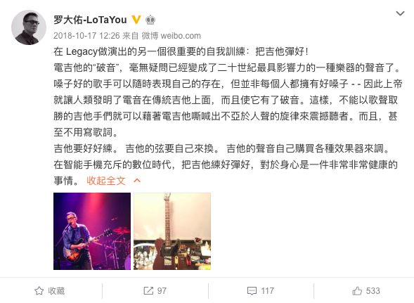 罗大佑在微博上,这么写道: