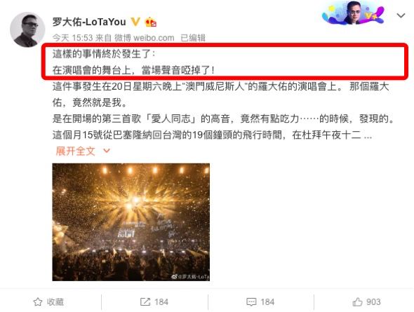 假如,今天罗大佑不发这条微博,没有人知道他嗓子哑了。