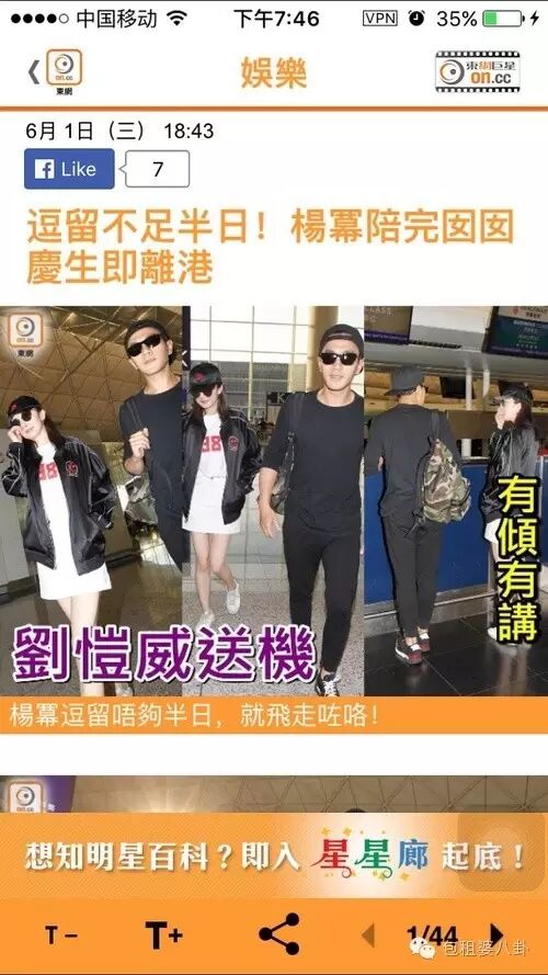 杨幂到港后,老公刘恺威前来接机。可是画风是这样的