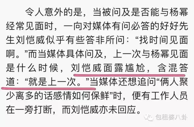 被问到离婚传闻时,杨幂也只是简单地说了一句“谢谢”。刘恺威被问到是否有准备礼物给小糯米,他回答“有”。被问到有没有追杨幂的新剧,刘恺威则回答“香港没得看”。