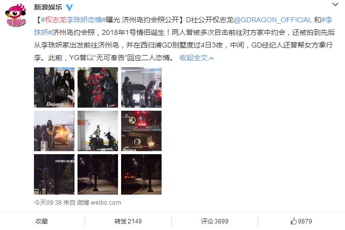 2018年的元旦,D社同样没有忘记放毒,权志龙与李珠妍恋情被曝光。