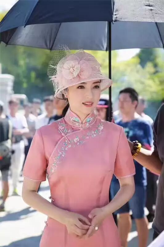 这是董璇产后复出的第一部剧,开机现场一身粉红pink旗袍+罩纱礼帽展现好身材、好气质,又是一位产后辣妈!