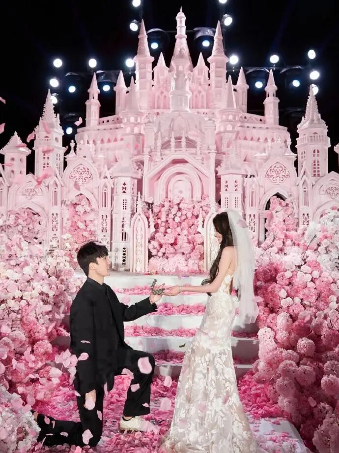 今年4月30日,陈一娜曾晒出被男友求婚的视频——鲜花、灯光、城堡布景,浪漫值拉满,好友“周周小可爱”等网红到场助阵,场面堪比偶像剧。然而,这番精心设计的场景却引发争议。有网友发现,她的求婚布景与另一位网红顾茜茜的求婚现场高度相似,调侃道:“现在网红求婚都走标准化流程了?城堡+花海+好友助阵,下一步是不是该直播带货了?”