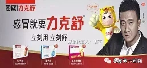 中国内地男演员、国家一级演员胡军代言恩威力克舒