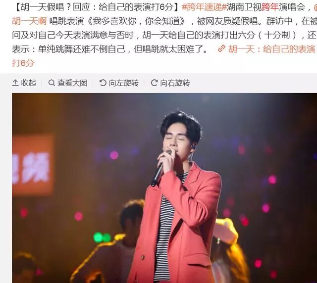 不过胡一天无论是视觉冲击还是舞台力表现都不逊色,不是专业歌手,肯定是主办方的现场要求,想舞台效果好一点吧。