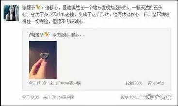 《石头记》缘起张馨予微博晒出当时还是她男朋友的李晨送给她的心形石头,