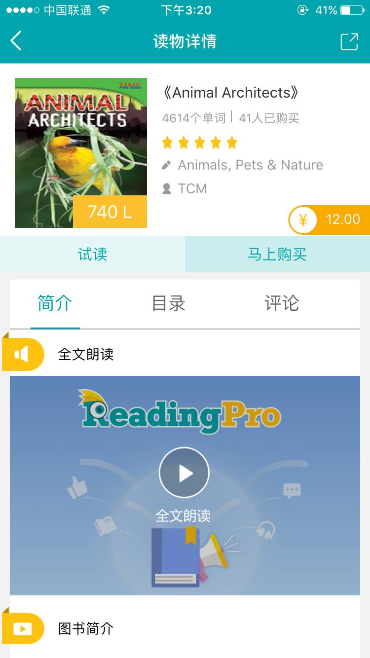 比如通过筛选,我对<Animal Architects>很感兴趣,那么可以点击这一本书进一步了解读物详情。