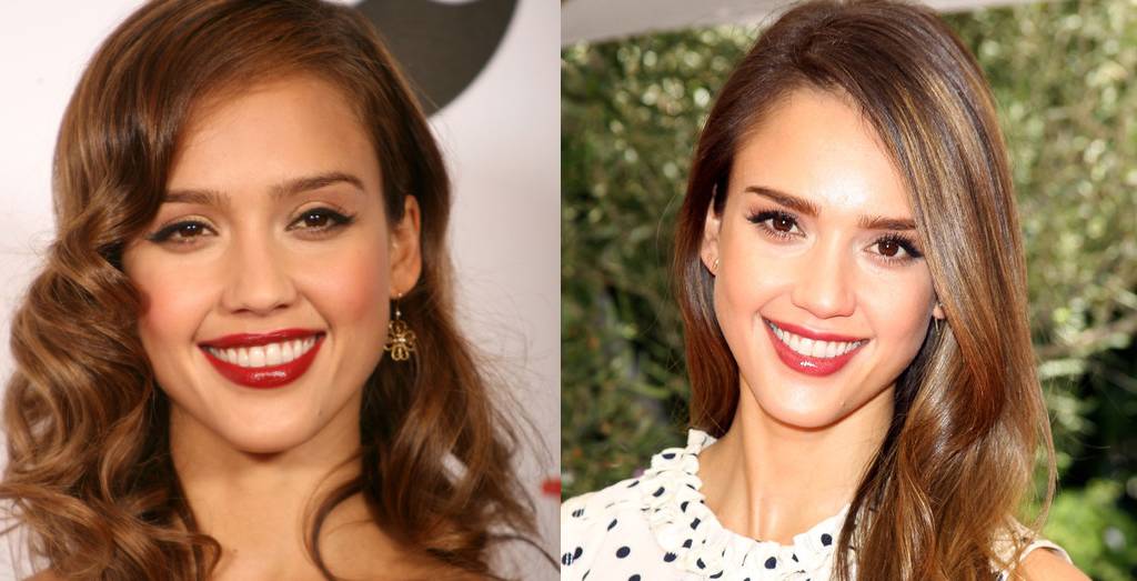 给你们举个比较直观的例子,刘诗诗的皮肤在女星中还算白,但不是冷皮,右边涂了颜色比较亮的粉色会显得很廉价,没有精致感,而左边偏橘调的红色则很有高级感。
