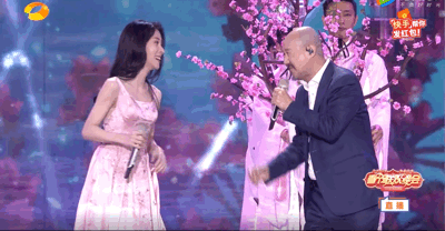 去年湖南卫视春晚舞台上,他竟然和甜美清新的张碧晨同台演绎了桃花朵朵开。