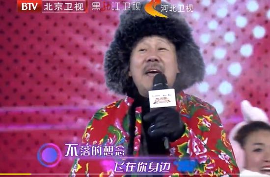 果然腾格尔承包了台上所有的笑点,他一出场整个画风突变,一首歌中间似乎卡带了好几次,一卡带,一边跟着节奏摇头换脑的扭动着身子,差点就要在台上扭起秧歌。