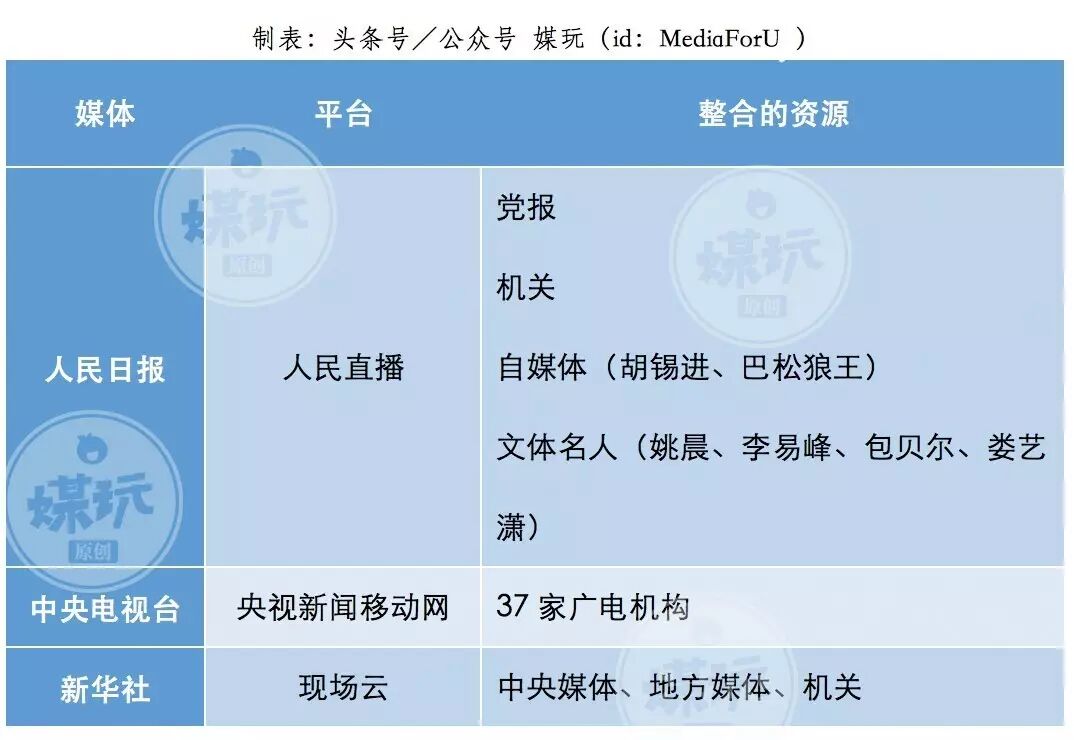 除传统范围,越来越稀缺的名人、意见领袖,也成为了三大媒体抢夺的重要资源。从表格可以看出,这也是“人民直播”产品的突破口之一。