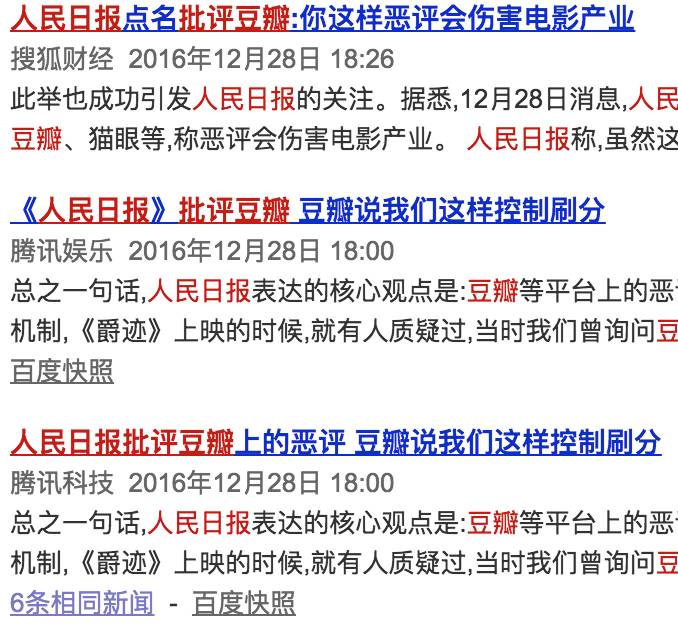 前段时间一篇名为《人民日报批豆瓣评分》的稿子,其实就是人民日报客户端作为平台方转载自《中国电影报》的评论文章。但被很多媒体误报为人民日报的观点。