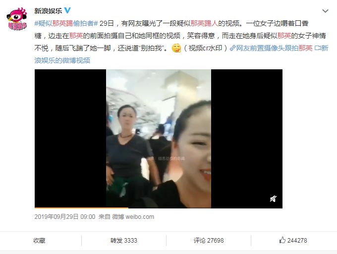 再来就是去年底的偷拍踢人事件。彪悍的那英蹭蹭登上热搜,并收获一半赞美一半批评。