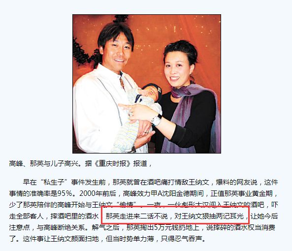 不太高兴的是,那英还怀着高兴的时候,就有一个叫做王纳文的女人公开爆料,说自己早就给高峰生了儿子,都3岁了。