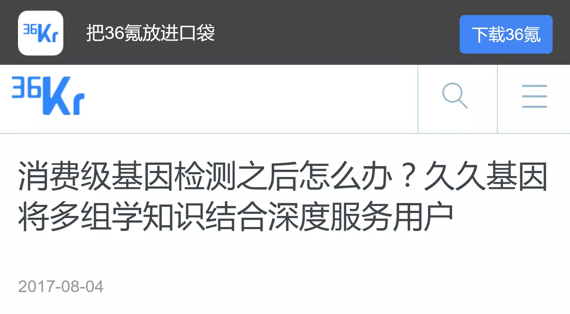 不仅如此,科技创业第一媒体36氪也十分认同久久基因的服务模式,并进行深度报道。