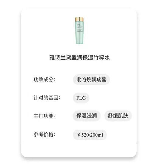 对于敏感部分,就有雅诗兰黛盈润保湿竹粹水,它里面含有的吡咯烷酮羧酸对增强我薄弱的FLG基因很有帮助。