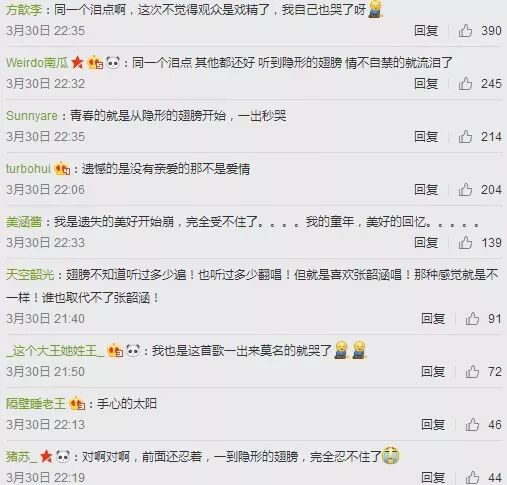 作为90后青春的回忆,张韶涵重新回到歌迷的视野中,歌迷们大呼感动落泪。