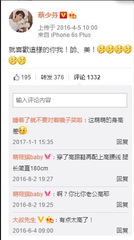 不过台湾女星身高普遍150cm+,身高上的硬伤也给蔡依林带来了很多困扰,前男友锦荣更是神补刀,和蔡依林分手后说道:“高的女生蛮适合我,沟通比较方便,对我的腰跟脖子比较舒服,我年纪也不小了,要为身体考虑。”