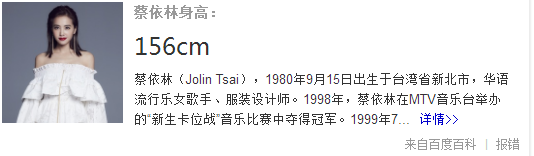 中国的女明星向来都喜欢谎报身高,明星的身高谜团是一个接一个,实在是让人招架不住啊,就连官方给出的蔡依林身高也是各有不同