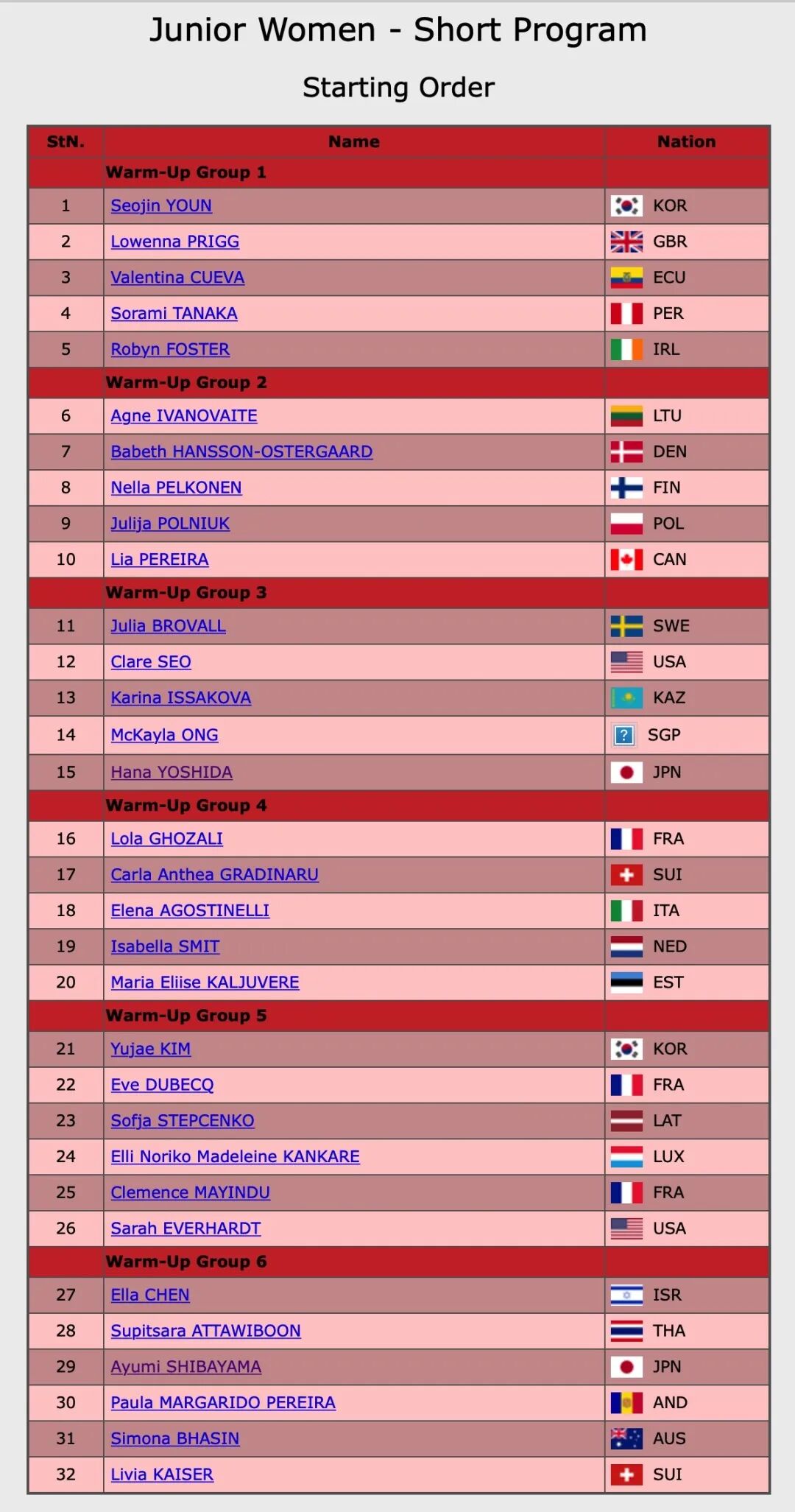 女单方面,在俄罗斯选手不能参赛的情况下,青年组女单呈现日韩争霸的局面。日本派出的选手吉田阳菜和柴山步分别是全日青的第4和第6名,全日的第9和第10名,其中吉田阳菜拥有3A难度,虽然成功率要看天意;韩国选手Yujae Kim和Seojin Youn都是三周套的顶配难度,只要能够完美完成,就能拿到不错的名次;美国选手Clare Seo是世青第6名,但从本赛季参赛情况来看似乎进入了发育期,具体表现如何还要看实际发挥。