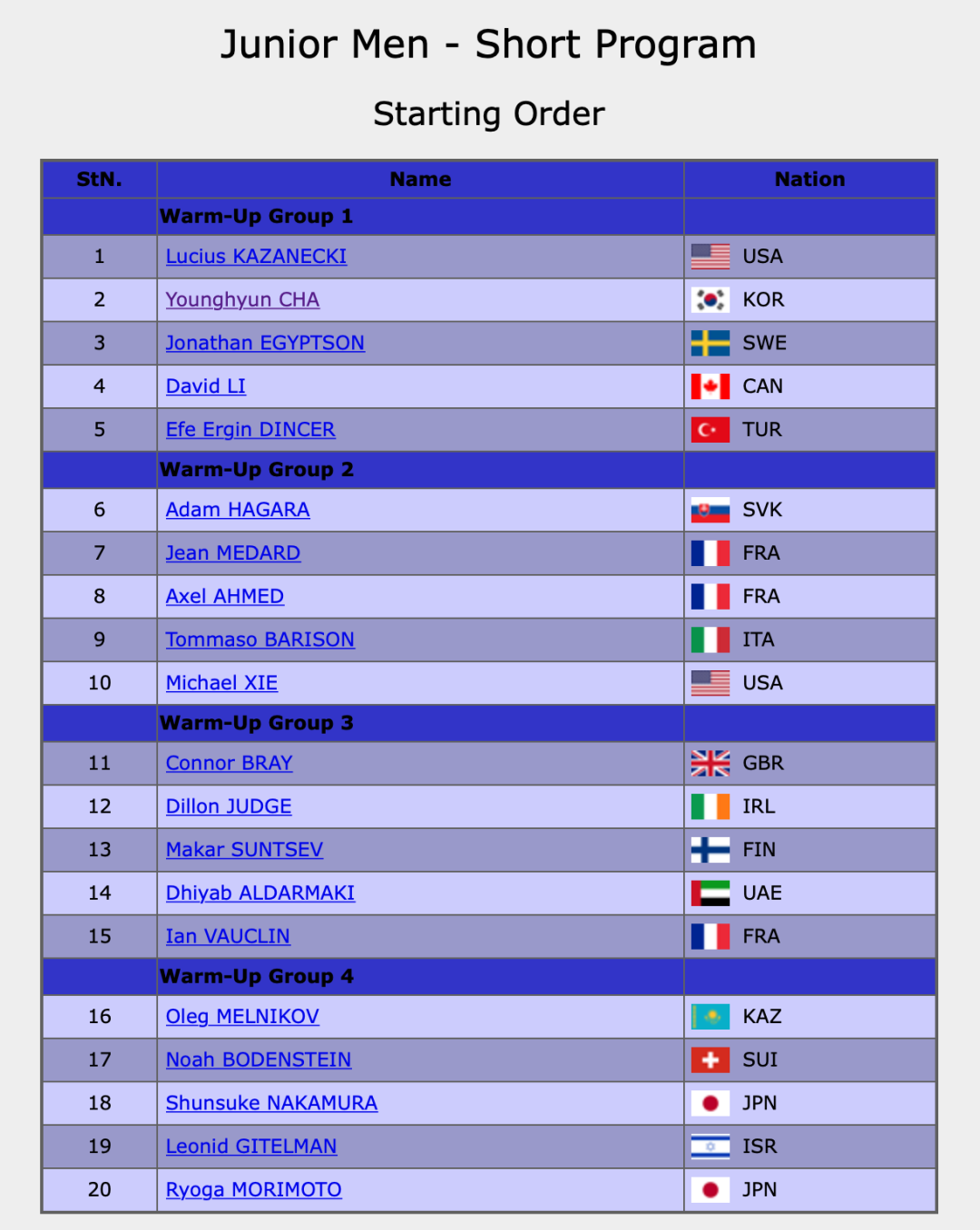 男单方面,日本派出中村俊介和森本凉雅,这两位选手分别是全日青的第6和第7名,其中中村俊介拥有4T难度,他也是本站男单中有记录的唯一能够完成四周跳的选手;斯洛伐克选手Adam Hagara拥有3A夹心跳难度,是本站世界排名最高的选手;韩国选手Younghyun Cha是全韩第4名,2021年JGP卢布尔雅那站的第4名;另外一个值得一观的看点是意大利选手Tommaso Barison,倒不是他有什么出色的成绩,而是他有190+的身高……