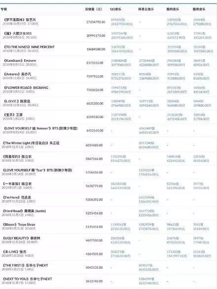 ↓↓ 一个2018年专辑销量排行统计↓↓