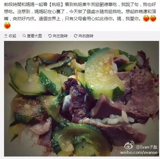 有网友在看了《桃姐》之后,说想吃牛舌,于是自己的母亲就记在心里为她做了。