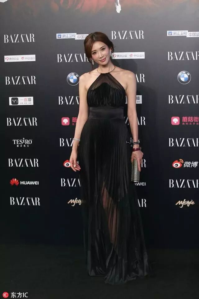 志玲姐姐本次选择了一条黑色挂脖褶皱透视长裙走上红毯,没有繁琐的设计和拖沓的装饰,简单搭配银色耳环、手镯和手包。她的美是简简单单的水到渠成。