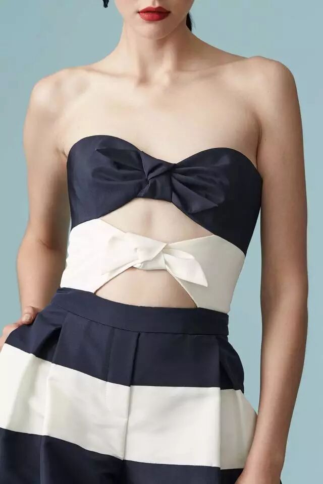 女神宋茜本次身着Carolina Herrera 2017早春度假系列亮相2016芭莎慈善夜红毯,黑白条纹搭配扩腿裤设计,活泼中带着睿智,条纹与弧线完美融合。挑身材的黑白横条纹对身材极好的宋茜来说,挑战起来毫无压力。