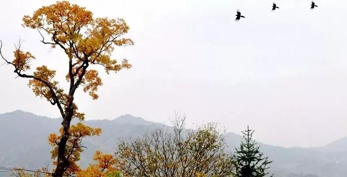星罗棋布的银杏在湿润的空气中也送来杏叶的清香,夹杂着泥土芬芳的气息。那扇形的金黄杏叶在风中摇曳,好似老人坐在门前手中悠然晃动的蒲扇。双目眺望远方,深邃的目光要穿过层峦叠嶂的青峰,落在远方游子的身上。秋风至,人未归。这是一份厚重而深沉的等待,等待这一生的嫣红,等待四目相视的眷恋。这就是北山的秋啊!