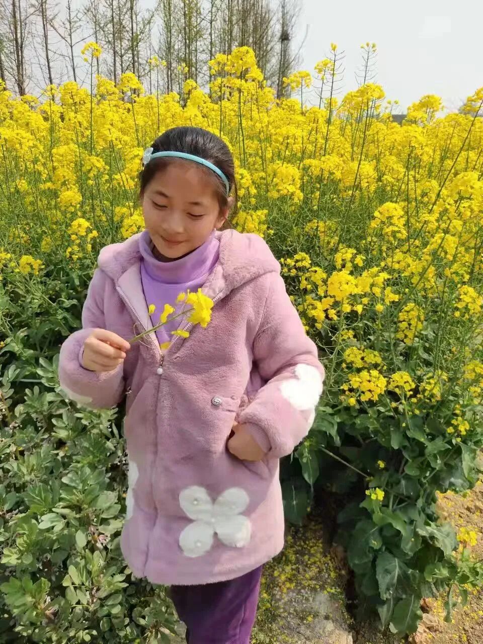 也许是春在呼唤,又似乎是突然一现的调皮,我跑进花丛,跑着跑着,扣子不自觉松了,迎风扑扇的外衣宛如肋下生出的双翅,小小的个子在花间窜动。田间荡起一圈又一圈的波纹,清香扑鼻而来,这春的味道让人迷醉。