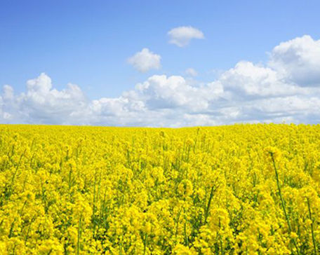 “满目金黄香百里,一方春色醉千山”。此地无山,这春色便只能醉人了。