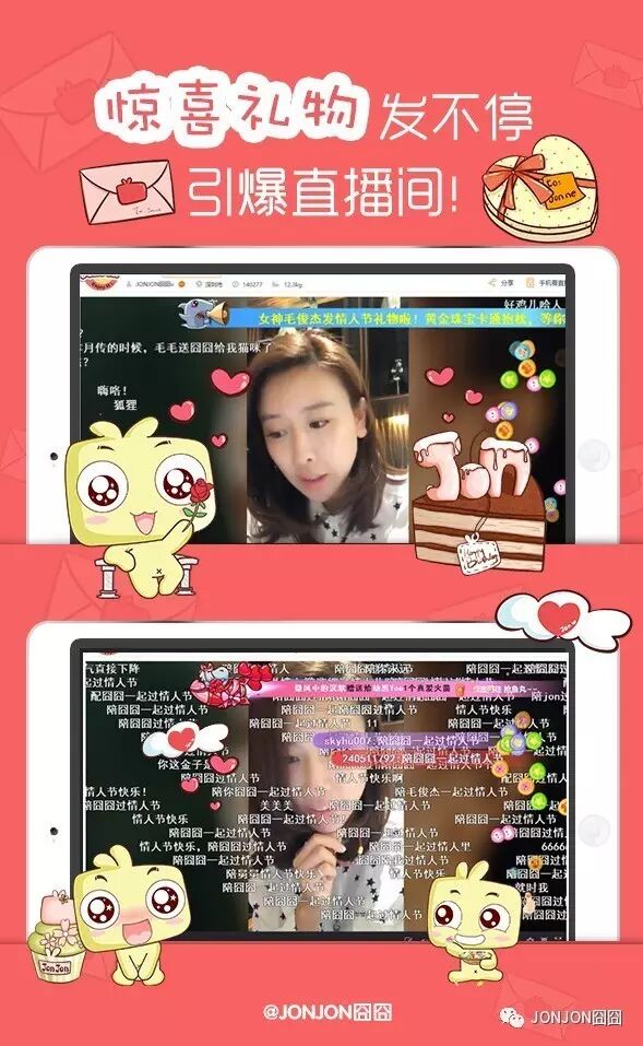 2017年,JONJON囧囧8岁了,在八周岁当天,JONJON囧囧和携手品牌代言人《芈月传》大公主的扮演者毛俊杰来一场特别的八周年生日会直播活动。短短20分钟,同时在线16万多人次。