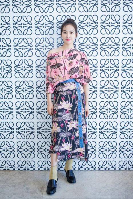 宋茜身着LOEWEx Paula's Ibiza合作系列亮相青岛海信广场开店活动。当天,宋茜高束丸子头搭配印花上衣和长裙,在精细的针线和轻盈的纱裙的衬托下,身材纤细,整体造型时尚而富有个性。
