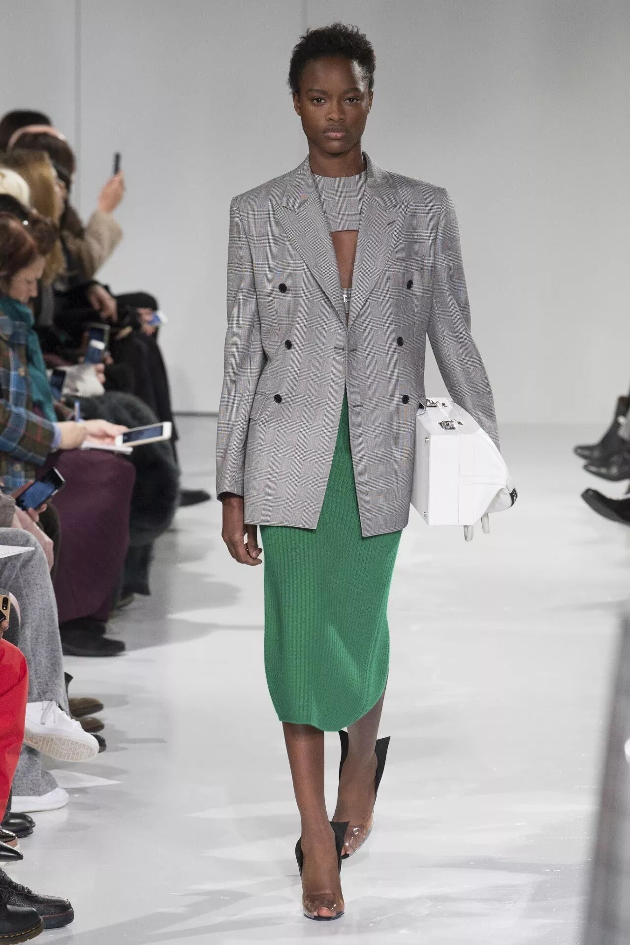 W:今年秋冬,依旧还是各种复古元素,就像是条纹高领毛衣,oversize衬衫之类的~ 但是阔腿裤的话,大家也可以少穿了,今年的时髦需要瘦腿!