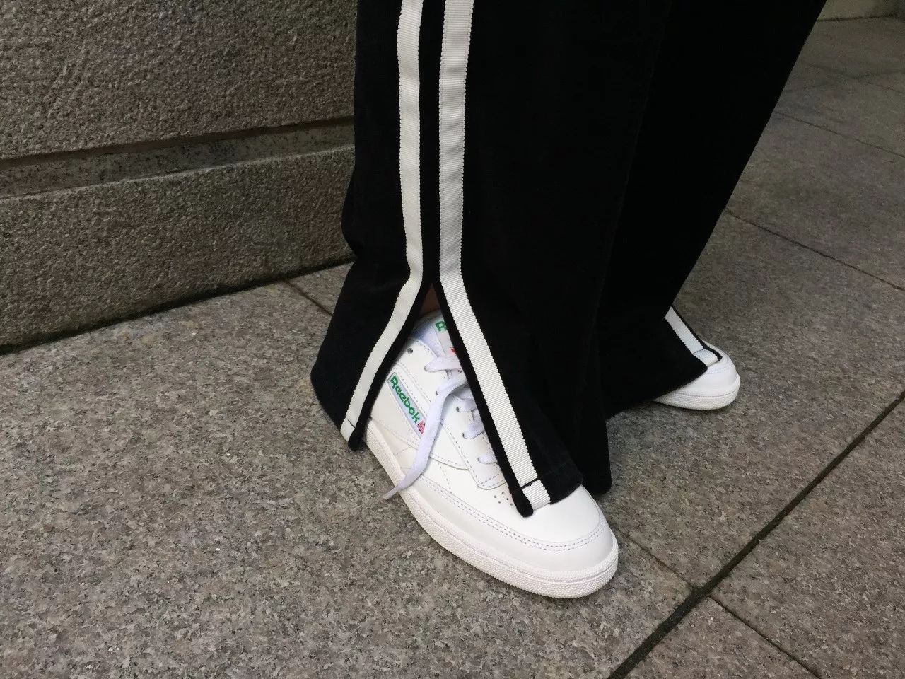 T:William 平时就是一个喜欢穿潮牌的小孩,所以今天我想给他尝试一些新的风格,就像我帮他选的这条喇叭条纹西裤,肯定是他一辈子都不会穿的单品。喇叭裤配Converse高帮球鞋,就很70、80年代的复古感,蛮有趣的。