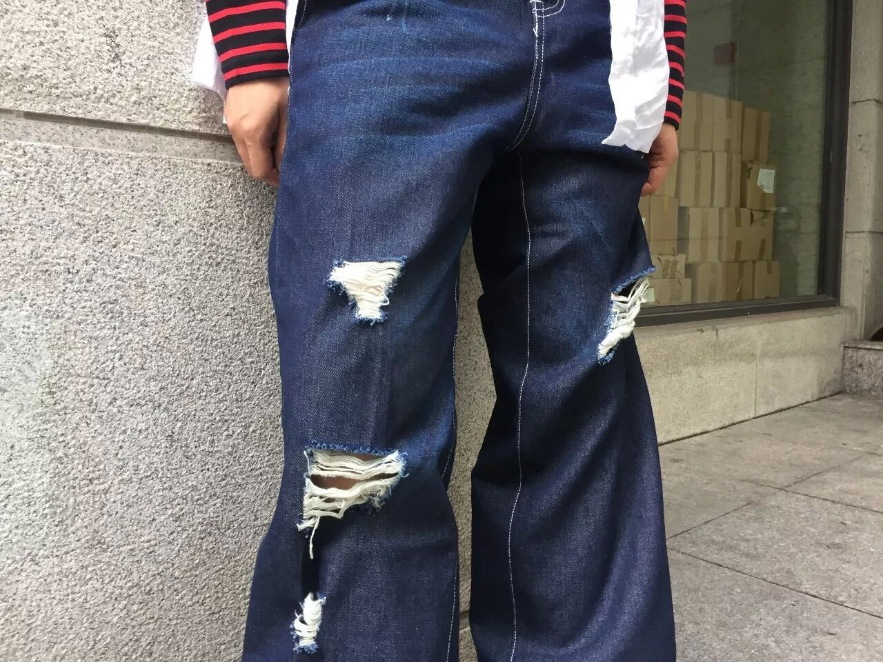 原色破洞直筒阔脚牛仔裤 MIXSEVEN
