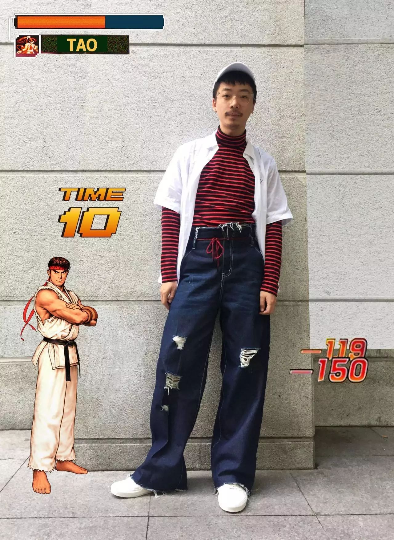 T:潮流小男孩的不知方向。哈哈哈,会不会太严重(因为他个子太高,不太适合做潮流男孩)~
