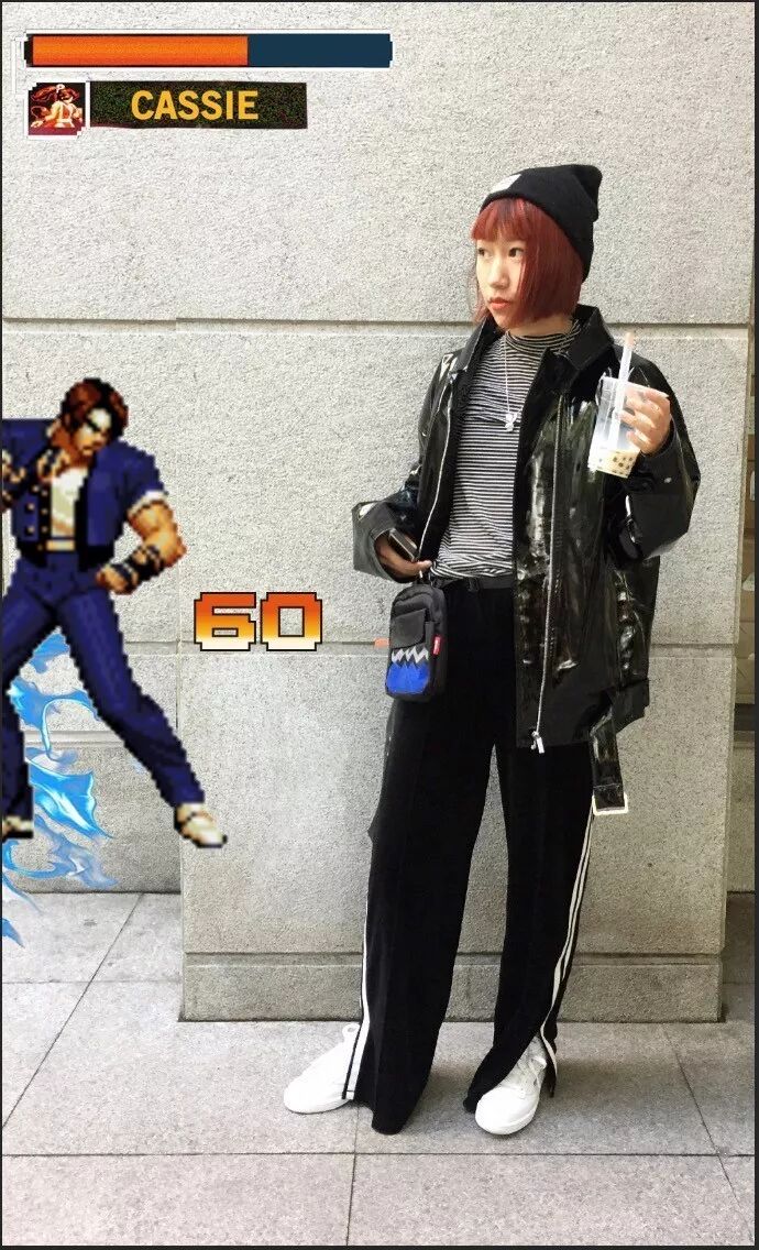 M:7分,原本内搭的比较提亮的卫衣没有收到,所以穿的是cassie本来的内搭。换成连帽卫衣会更青春也更有层次。