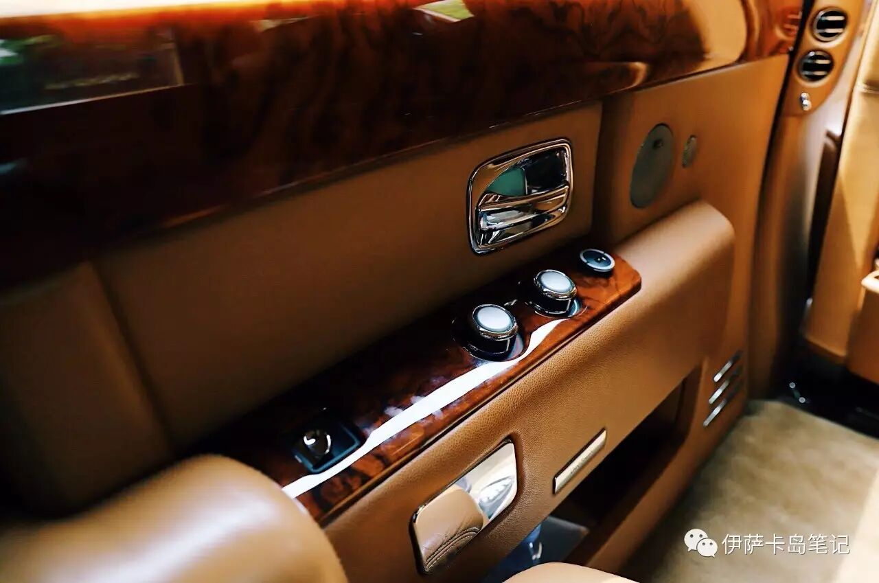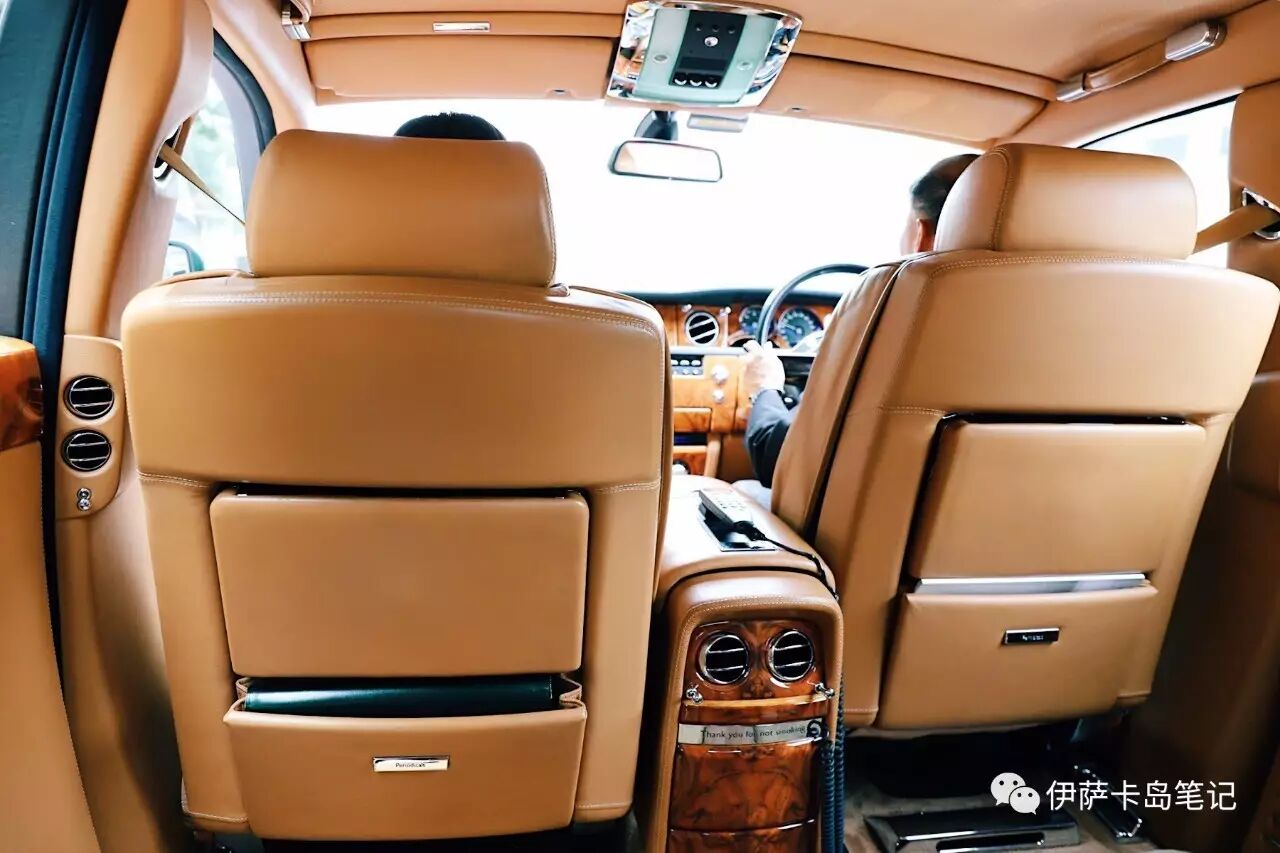车内空间很大,腿再长的都能伸直着坐。全真皮的包裹,搭配上好的实木装饰,整体质感和触感很豪华。据说劳斯莱斯车里的实木装饰连两边花纹都是对称的,岛主粗粗地看了一眼,好像还真是。