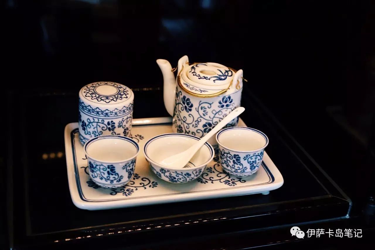 墙柜里除了常规的茶叶、零食、酒和酒杯,自动咖啡机,还有精美的青花瓷茶具,满足了绝大多数人的需求之余,同时让人感觉很讲究。