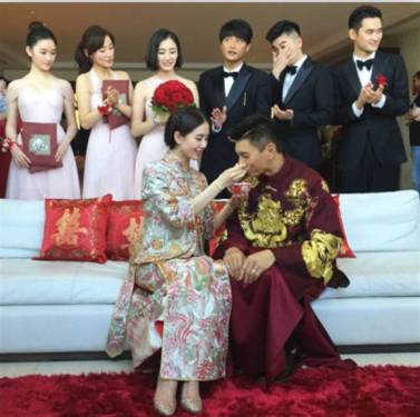 一般婚礼现场出现的新郎带着伴郎闹洞房,以及新娘和一群伴娘在婚房甜蜜祝福合照的照片在这场婚礼上完全没有。唯一有的,大概就是刘恺威和杨幂给双方爸妈敬茶的画面吧。