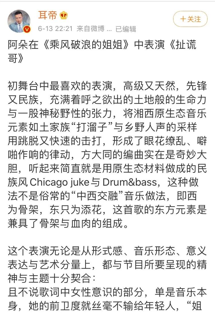 此次阿朵在《乘风破浪的姐姐》初舞台表演中,就演唱了专辑中的《扯谎哥》。